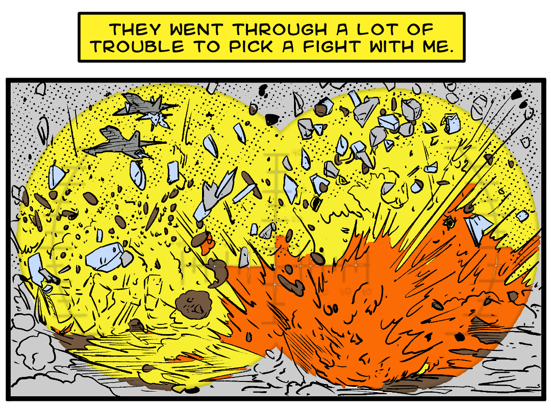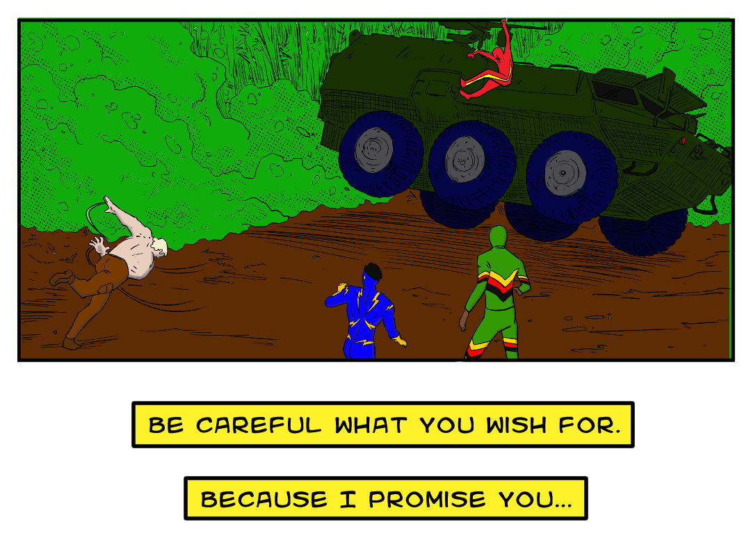As you know if you’ve watched this or the first trailer, I used Imagine to animate from Luke’s original art. One problem among many with that is that the AI video generator almost always insists on doing something other than what you tell it to. On the rare occasion that it generates a clip close to what it was prompted, it will hallucinate something stupid into the video that makes it unusable. For every clip I used, there are 12 or more clips inferior to what you see.